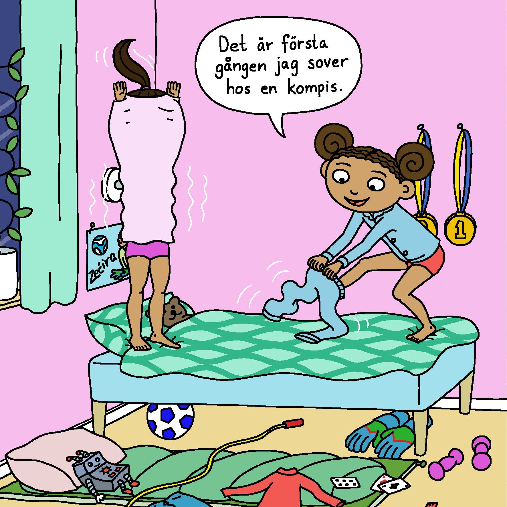 Hon försöker väcka Safa, men Safa sover som en stock.